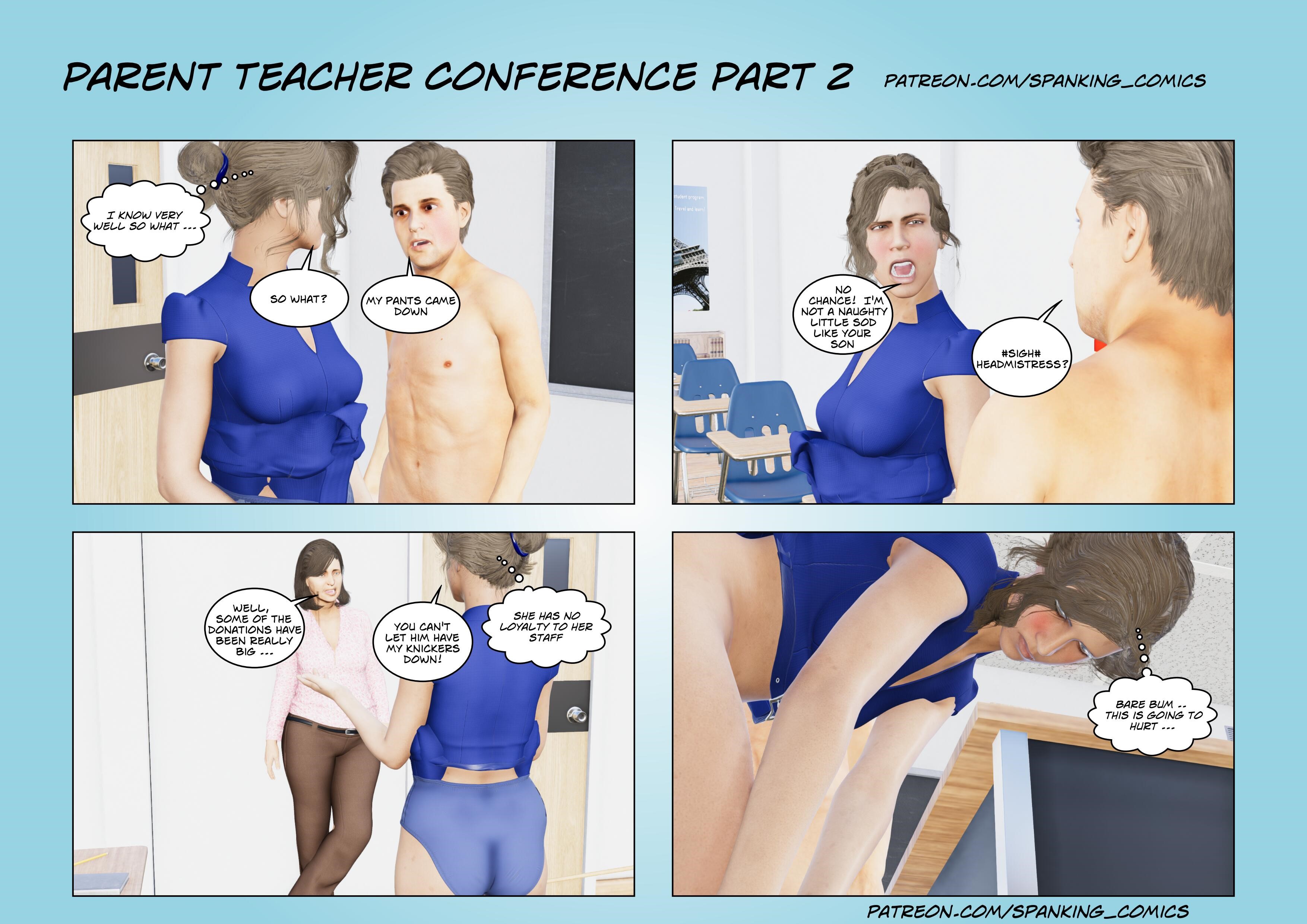Miss Sutton has just finished caning errant parent Simon and is enjoying his discomfort at his pain and nudity. But suddenly the headmistress walks in!